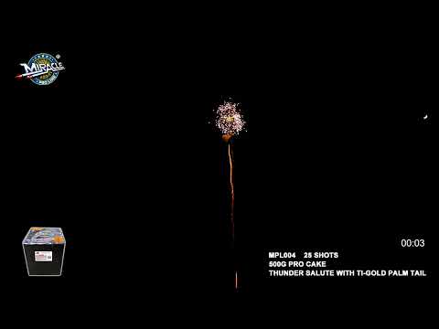 25 Shots Thunder Salute With Ti-Gold Palm Tail