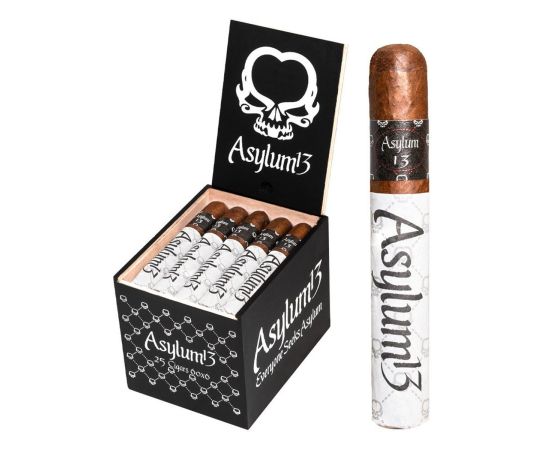 Asylum 13 cigars are true Nicaraguan puros. A dark, Nicaraguan Habano wrapper cloaks a feisty combination of aged Cuban-seed long-fillers grown throughout the black, volcanic soils of Nicaragua. Upon igniting, one can expect a complex, medium to full-bodied array of flavorful, along with a slow, cool burn letting you fully appreciate every last nuance. Earth, cocoa, espresso bean, black tobacco, sweet notes, and gentle spices.
