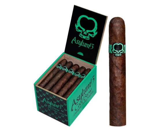 Asylum 13 cigars are true Nicaraguan puros. A dark, Nicaraguan Habano wrapper cloaks a feisty combination of aged Cuban-seed long-fillers grown throughout the black, volcanic soils of Nicaragua. Upon igniting, one can expect a complex, medium to full-bodied array of flavorful, along with a slow, cool burn letting you fully appreciate every last nuance. Earth, cocoa, espresso bean, black tobacco, sweet notes, and gentle spices.