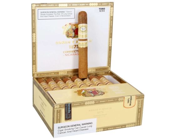 Romeo y Julieta 1875 Connecticut Nicaragua cigars are a groundbreaking project from Altadis U.S.AÍs master blender Rafael Nodal that creatively combines premium Nicaraguan and Connecticut seed tobaccos. This is a Nicaraguan puro that uses the finest vintage binder and filler tobaccos grown on the famed Plasencia farms.æ